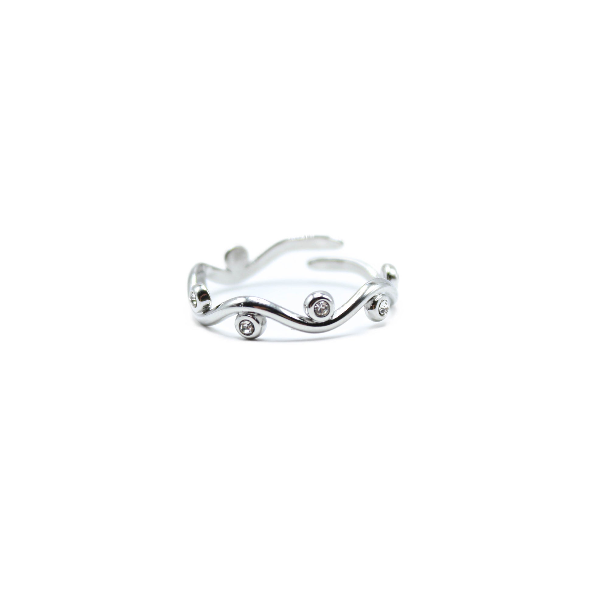 Descrizione : realizzato in acciaio inossidabile e privo di nichel e disponibile sia nella versione silver che gold. Ha un design giovane e moderno con una forma ad onde che avvolgono il dito e lo illuminano con delicatezza grazie alla presenza di zirconcini presenti lungo la circonferenza dell'anello. E' un anello dallo stile femminile e romantico, senza eccessi ma stile ed originalità. Può essere indossato tutto il giorno grazie al materiale prima resistente e inossidabile. Prodotto certificato e confezionato.