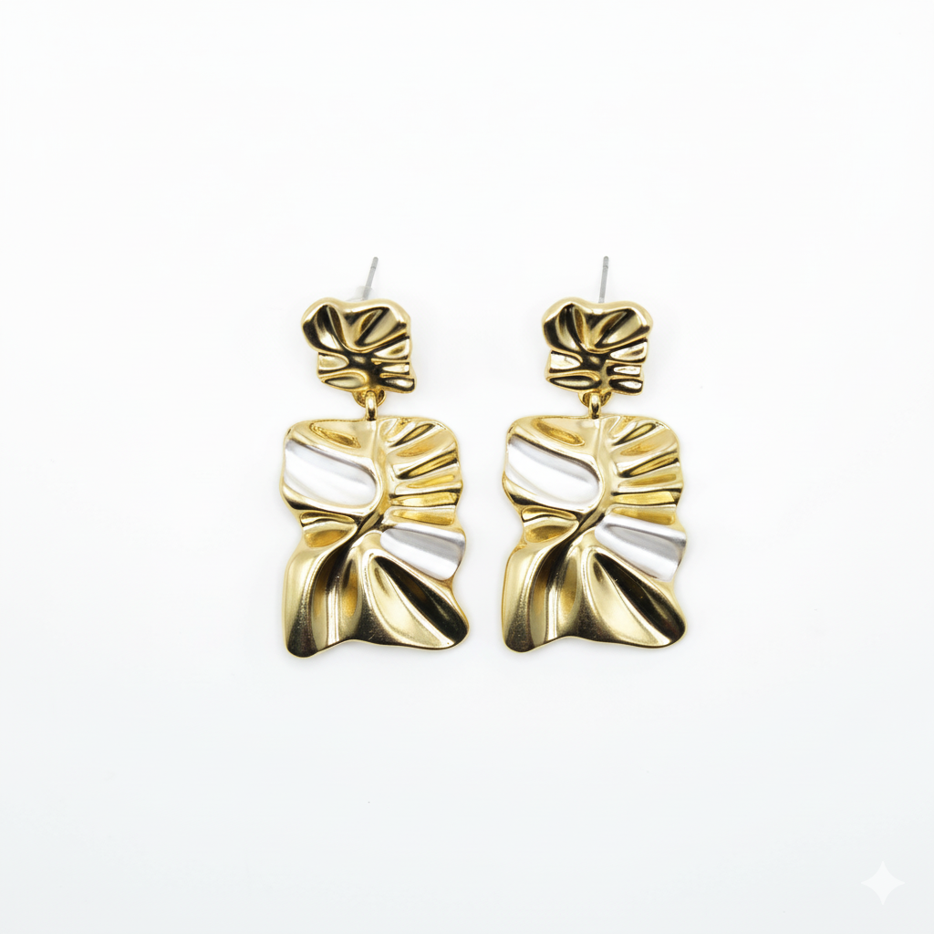 Descrizione: questi orecchini sono realizzati in acciaio inossidabile gold. Onde sinuose di metallo lucente a tratti smaltato di bianco, questo il design moderno di questi orecchini perfetti in ogni occasione e su ogni outfit. e sono disponibili nella versione silver.