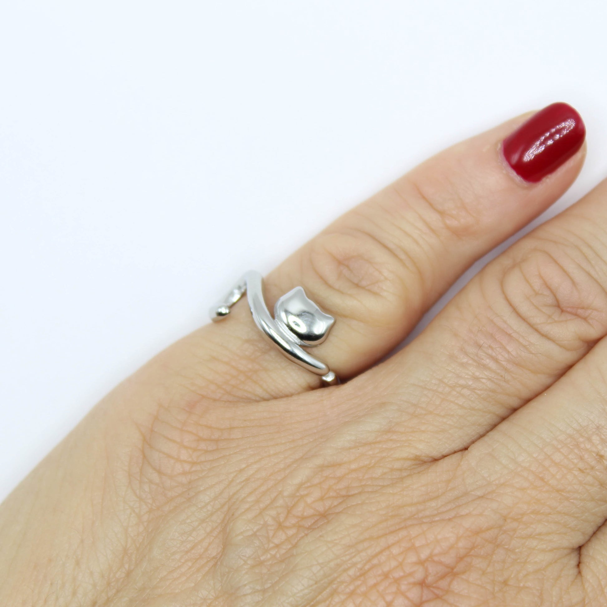 Descrizione: realizzato in acciaio privo di nichel e disponibile sia nella versione silver che gold. Ideale per le amanti dei gatti o per coloro che attribuiscono ai felini un significato sprituale e protettivo. Questo anello è giovane e originale. . Può essere indossato tutto il giorno grazie alla materia prima resistente e inossidabile. Prodotto certificato e confezionato.