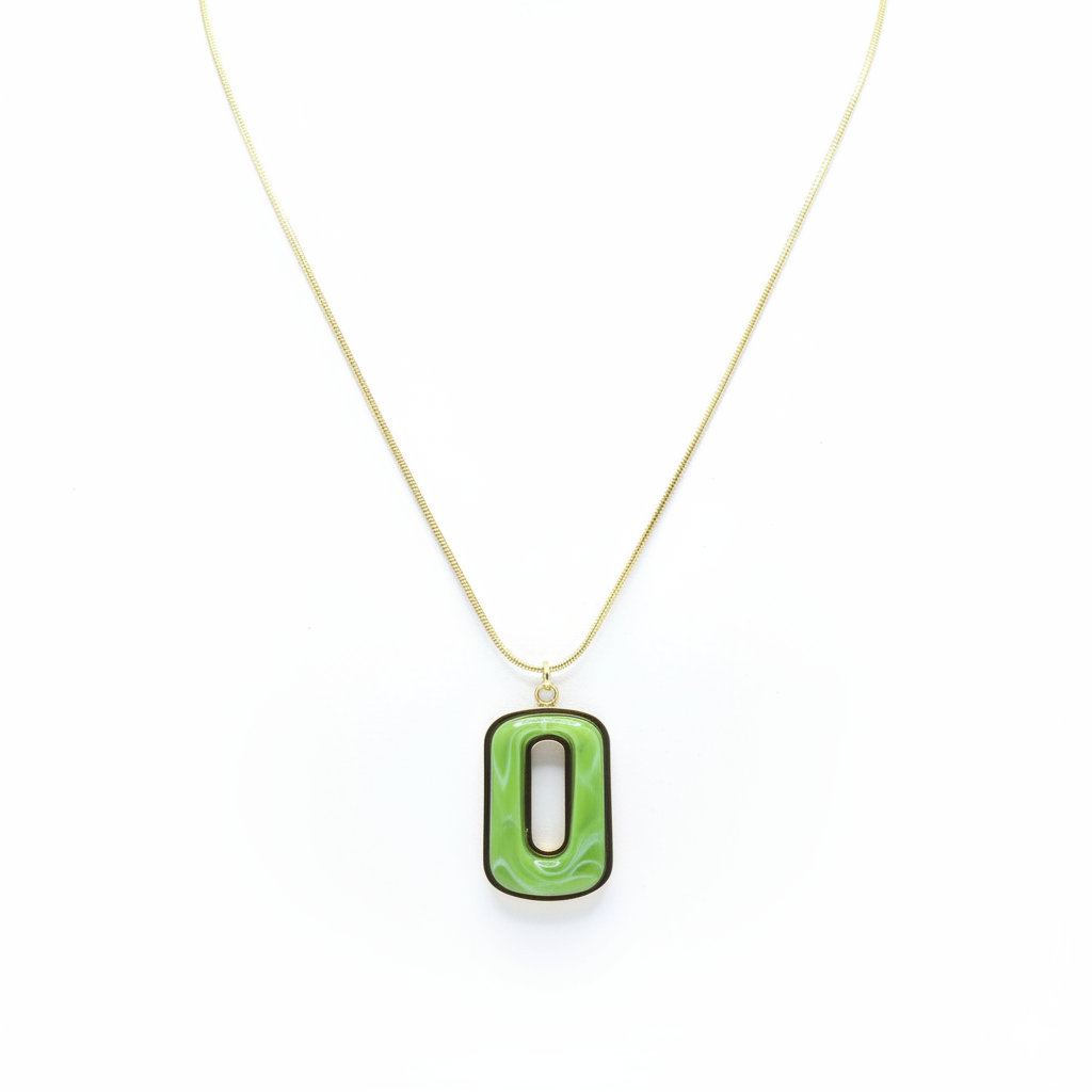 Descrizione: Realizzata in acciaio gold inossidabile e anallergico e disponibile in due varianti diverse di colore del pendente centrale. In un delicato colore rosa e in un verde brillante. Moderna nella linea è il gioiello perfetto da usare nel quotidiano da solo o in abbinamento con altri accessori.