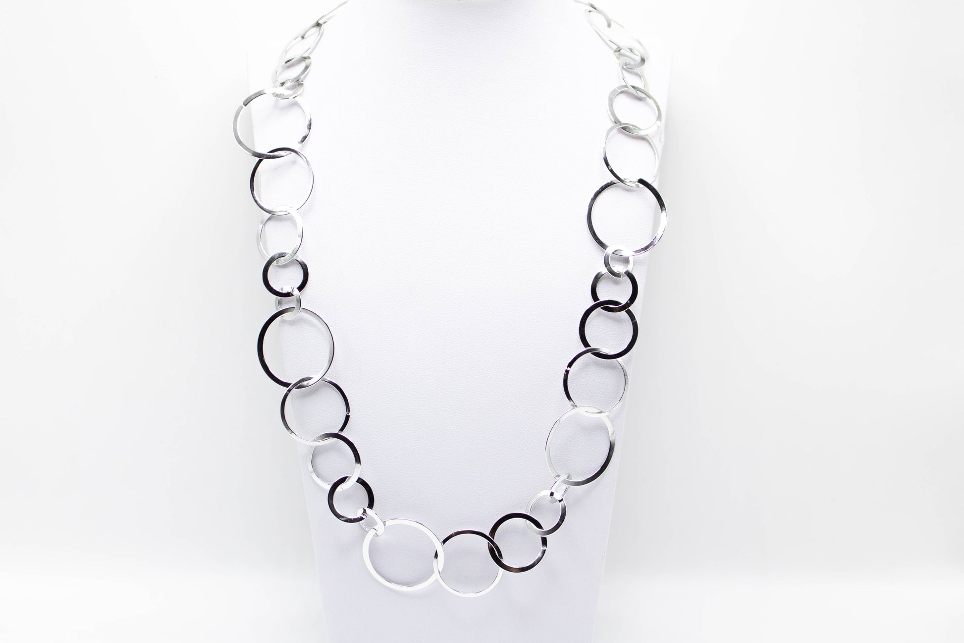 Descrizione: Realizzata in acciaio inossidabile, anallergico e privo di nichel, è realizzata da una serie di anelli incastrati tra loro. Ideale per chi ce4rca un accessorio leggero, ma dal sicuro impatto visivo.