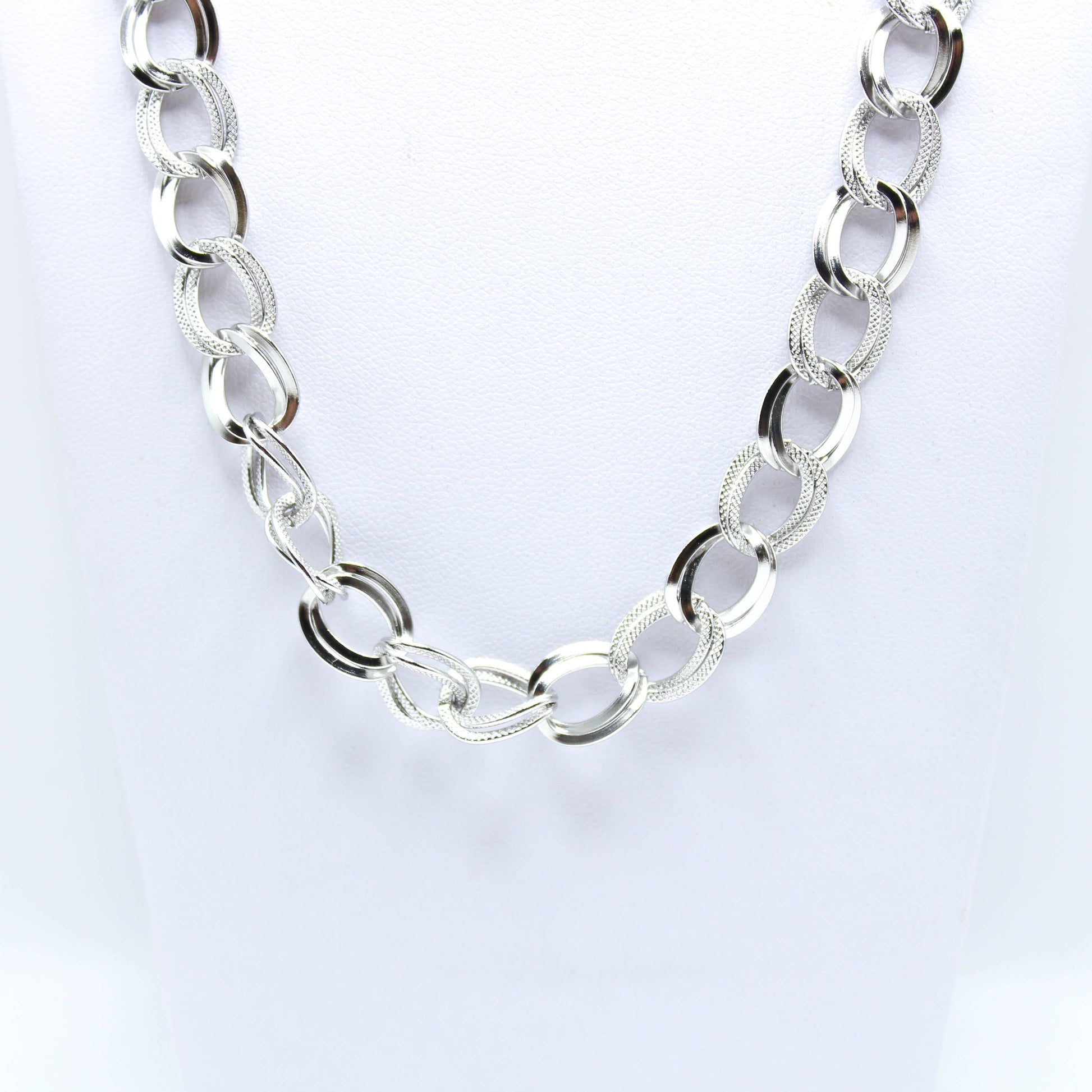 Descrizione: Realizzata in acciaio inossidabile, anallergico e privo di nichel, la collana Lola è caratterizzata da una catena formata da una doppia fila di anelli in parte lisci ed in parte dalla superfice lavorata che la rendono particolare e accattivante. La collana è molto leggera e quindi utilizzabile anche tutto il giorno e dalla linea sobria e quindi utilizzabile anche in abbinamento ad altri gioielli.