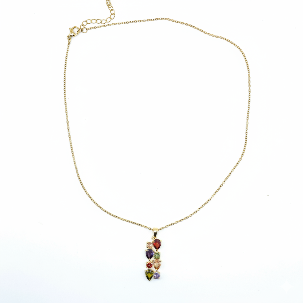 Descrizione: Realizzata in acciaio inossidabile, anallergico e privo di nichel e pendente in ottone con zirconi colorati. Un gioiello dallo stile elegante e raffinato adatto alla donna che ama i dettagli di classe che sanno catturare l'attenzione senza eccessi. Disponibile sian nella versione silver che gold.