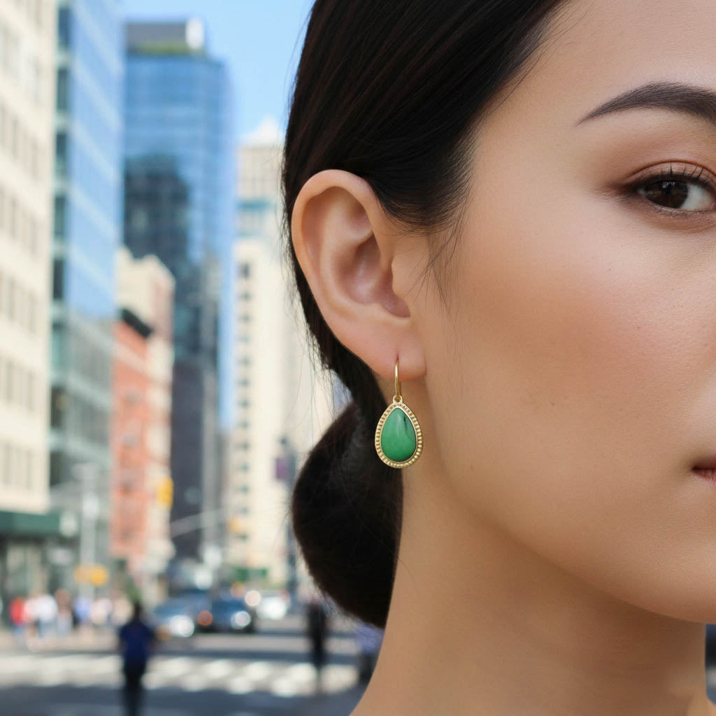Descrizione: questi orecchini sono realizzati in acciaio inossidabile gold. Semplice nella struttura ma deliziosi grazie alla pietra verde che ne esalta la bellezza. Ideali nella stagione estiva quando si ricerca il colore anche nei dettagli ma adatti tutto l'anno. Leggeri e con la pratica abbottonatura a monachella possono essere indossati tutto il giorno.