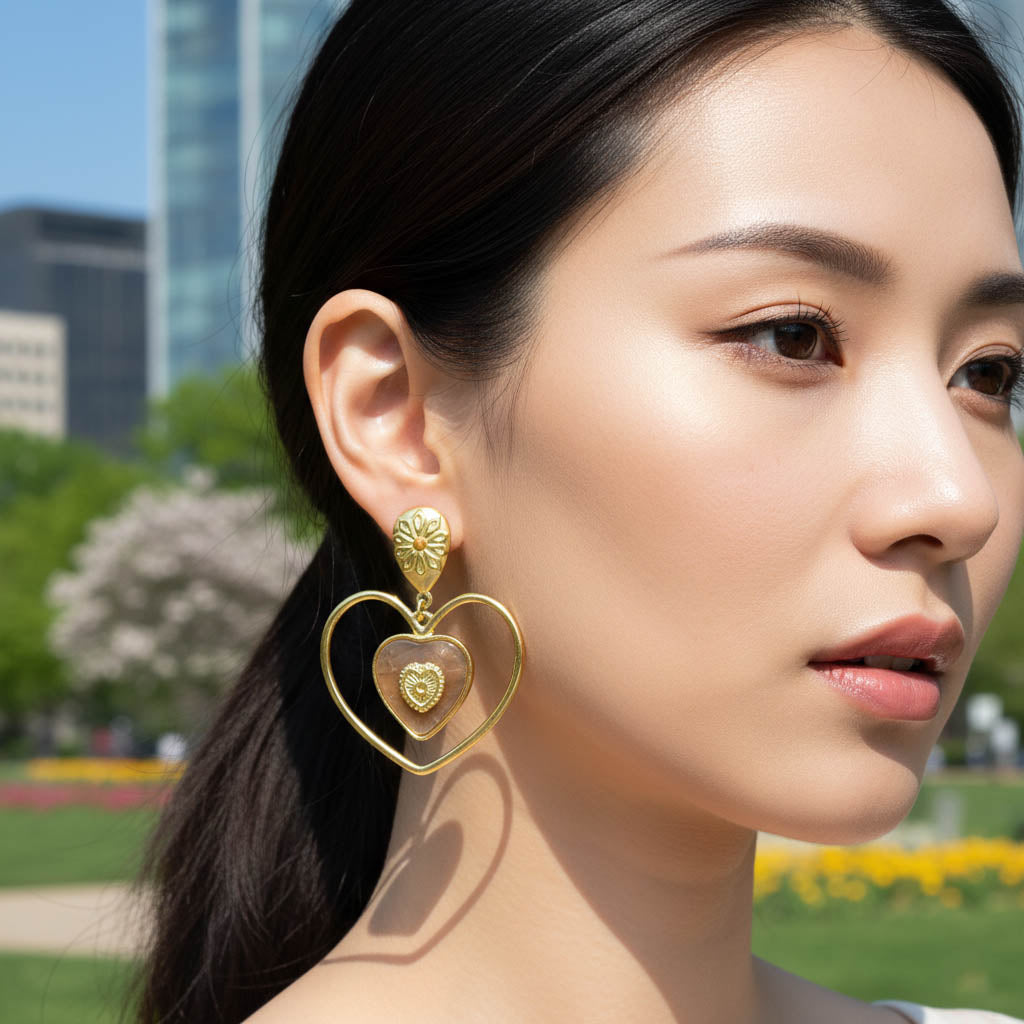 Descrizione: questi orecchini sono realizzati in acciaio inossidabile gold. Un semplice cuore reso originale dalla creatività ed originalità del designer. Dimensioni grandi senza essere ingombranti grazie alla struttura stilizzata del cuore. Orecchini originale e ricchi di fascino con quel tocco romantico sempre gradito. Pur nella loro particolare struttura sono leggeri e quindi utilizzabili anche tutto il giorno.