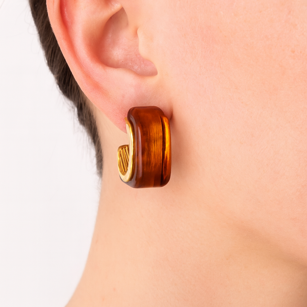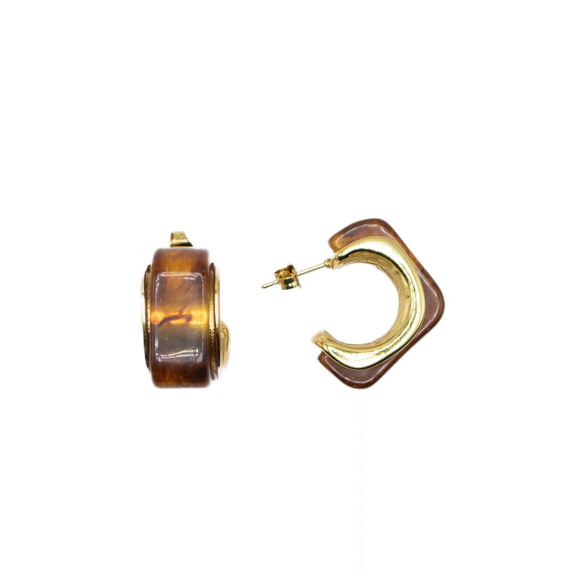 Descrizione: questi orecchini sono realizzati in acciaio inossidabile gold arricchiti da resina color ambra . Sono dei cerchi ma dall'insolita forma squadrata che li rendono originali ed accattivanti. Il design originale, la leggerezza e la qualità della materia prima li rendono un accessorio ricchi di fascino ed adatti anche ad un uso giornaliero.