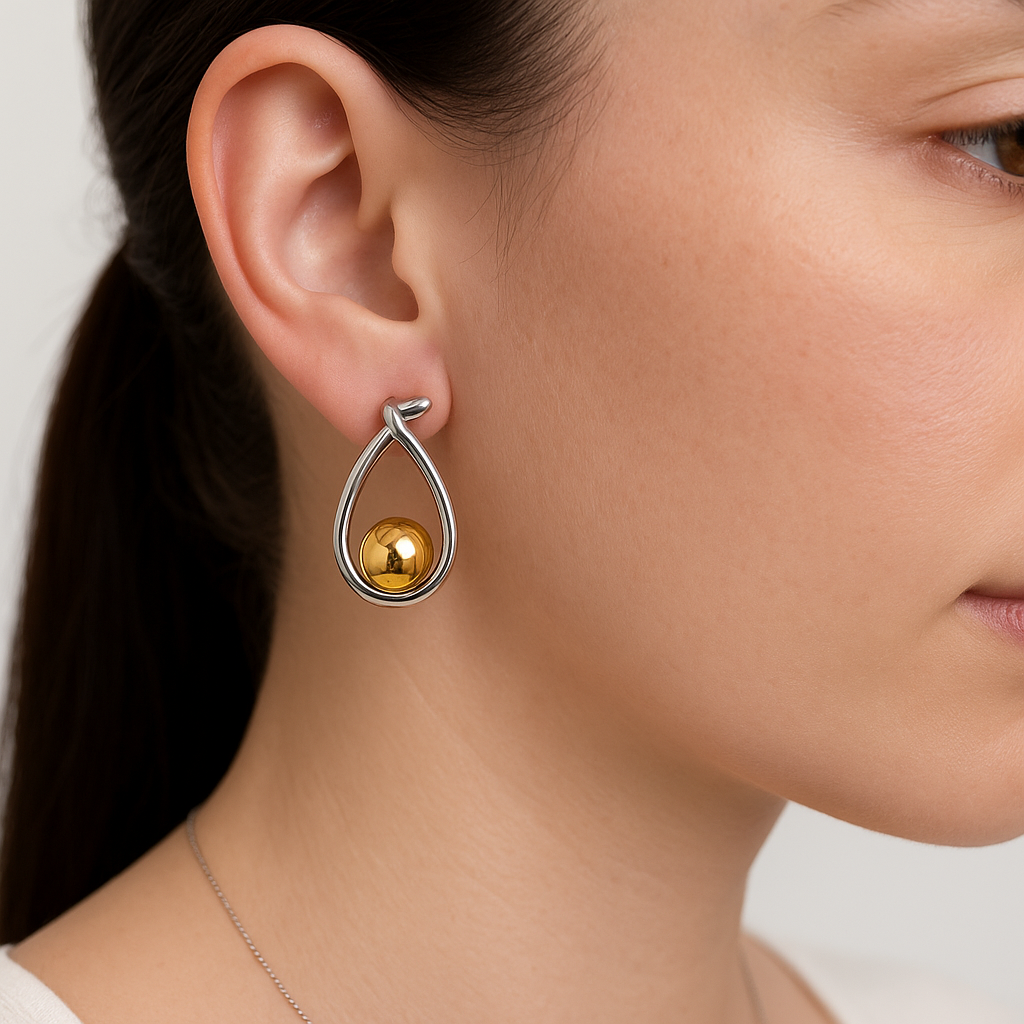 Descrizione: questi orecchini sono realizzati in acciaio inossidabile combinando insieme i due colori di metallo silver e gold. Tale connubio oltre a conferire fascino e originalità al gioiello consente anche infiniti abbinamenti con altri gioielli. Il design originale, la leggerezza e la qualità della materia prima li rendono un accessorio ricchi di fascino ed adatti anche ad un uso giornaliero.